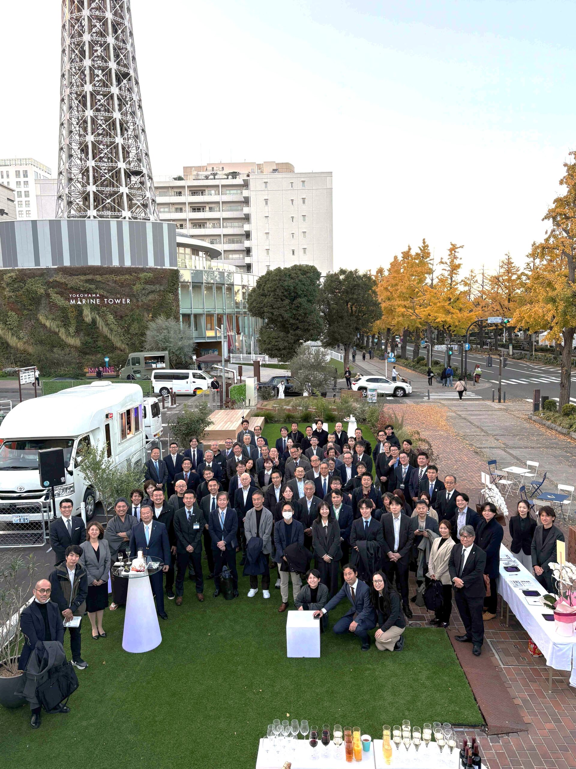 2025年11月28日(金)、 「JP BAYSIDE HUB」にて、グランドオープンパーティーを開催しました。「JP BAYSIDE HUB」は11月1日に開設しましたが、トレーラーハウスカフェ「VISITORS DOCK | Brew & Blend」の同月29日の開店をもってグランドオープンとなり、これを祝して、前日に地域のステークホルダーの皆様(約100名)にお集まりいただきました。