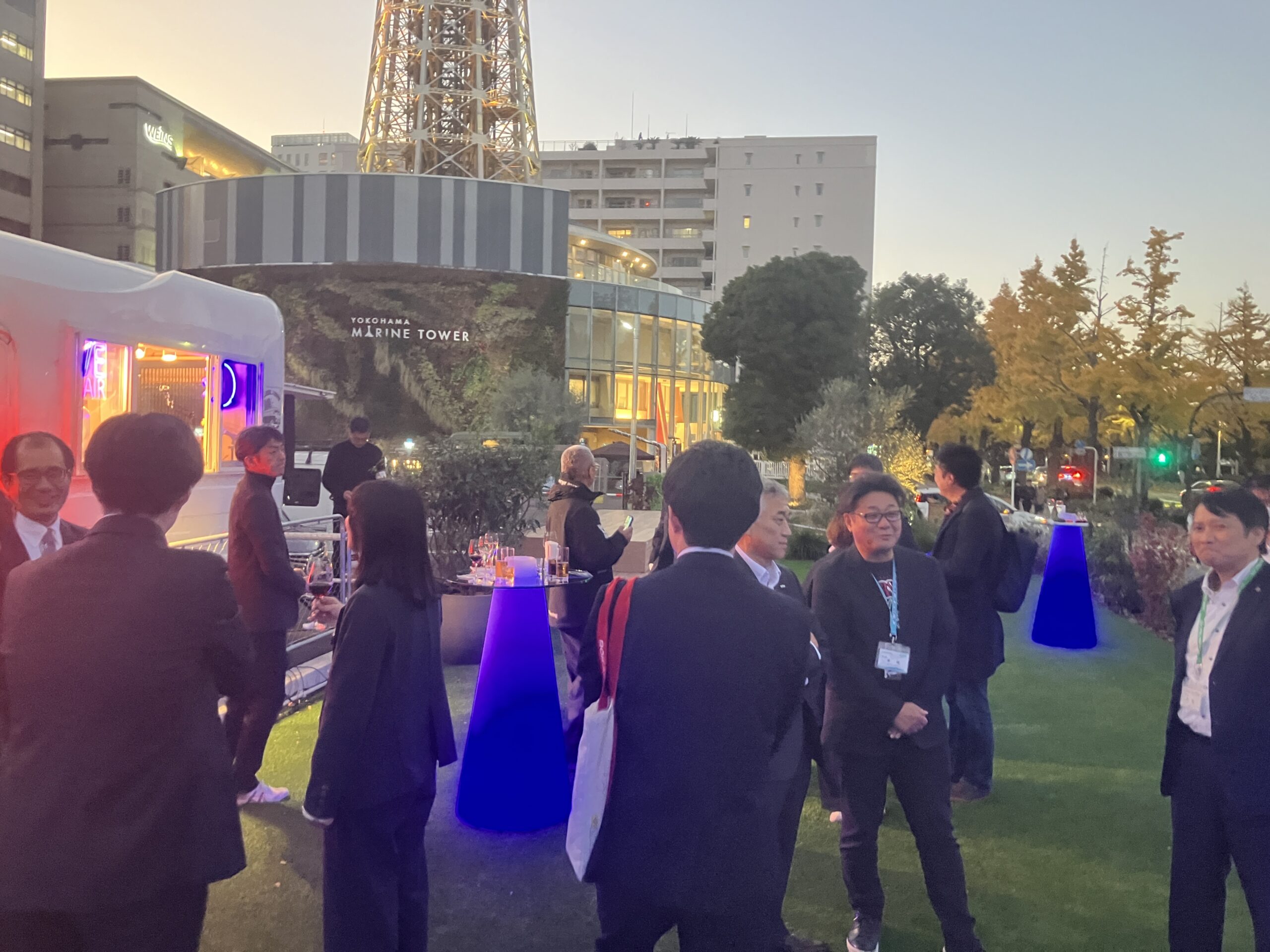 ご来賓の皆様を代表して山下公園通り会 原会長、元町SS会 宝田理事長、横浜市都市整備局 高井部長よりご挨拶をいただきました。その後、横浜関内関外地区活性化協議会 高橋会長の乾杯のご発声により、盛大に立食パーティーがスタートしました。
