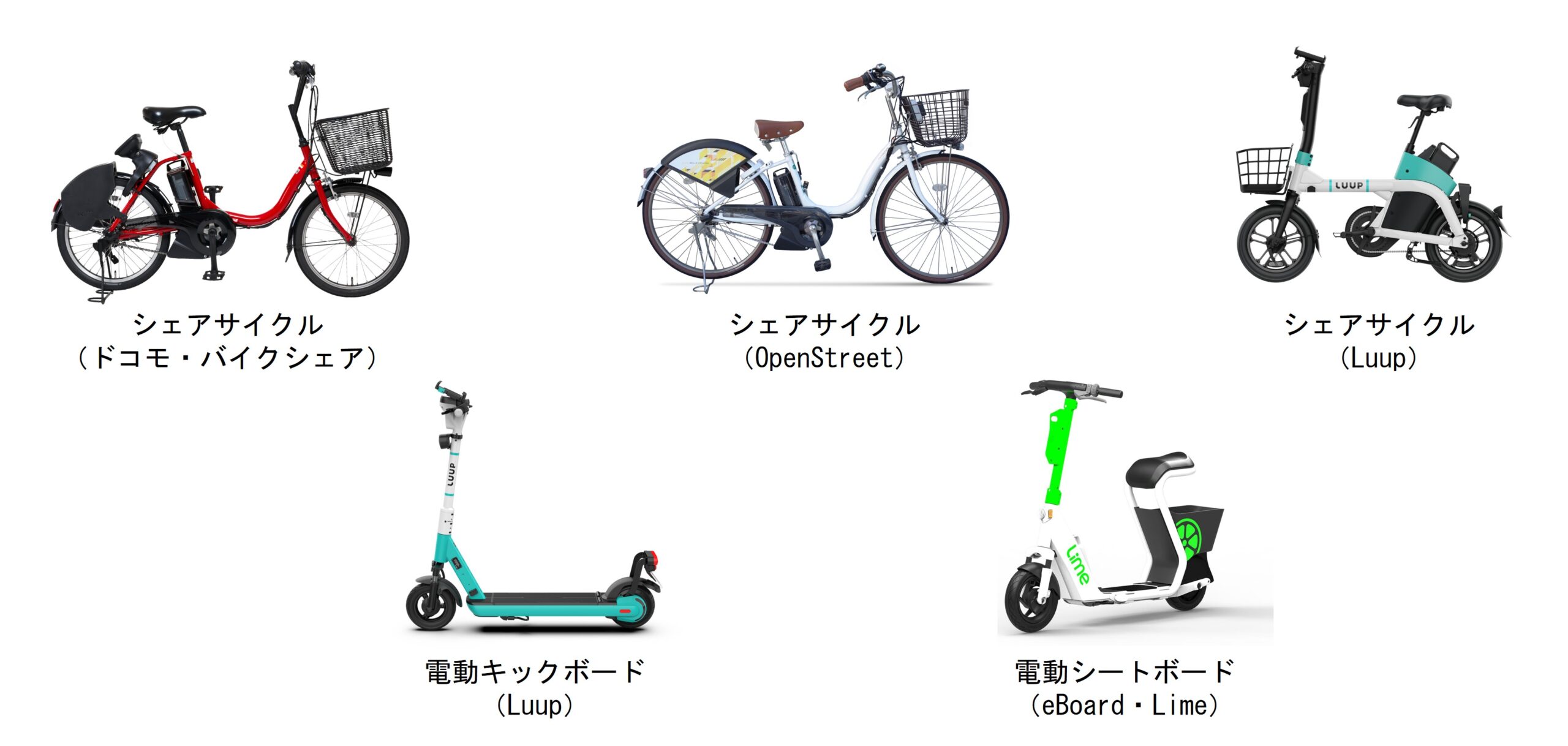 [事業者]株式会社ドコモ・バイクシェア、OpenStreet株式会社、株式会社Luup、株式会社eBoard・Lime株式会社