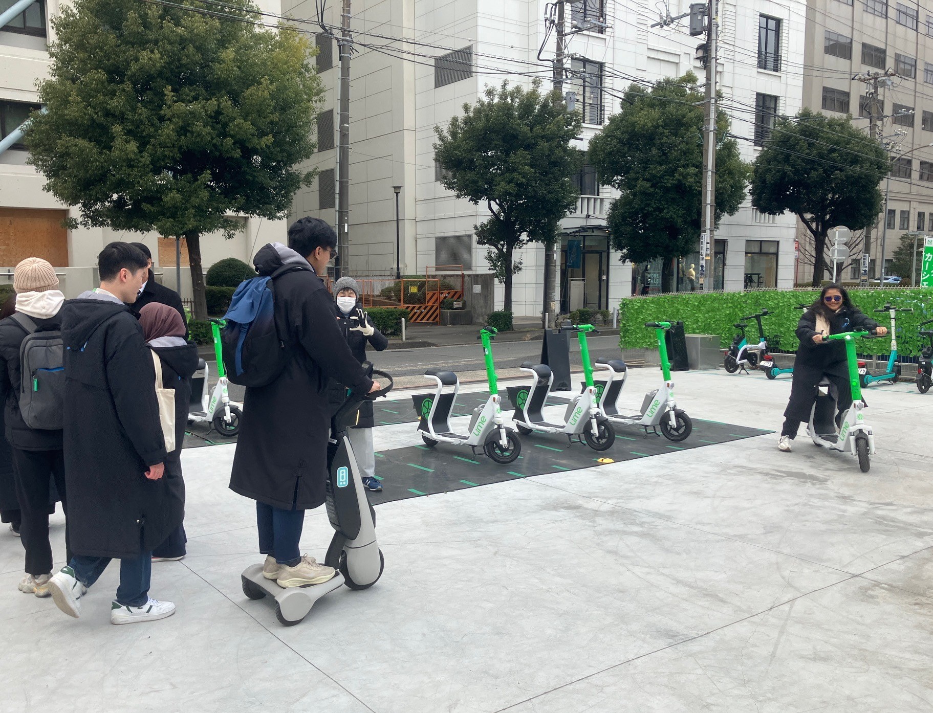 こちらの研修は、6カ国の政府から派遣された研修員が約2週間にわたり、JICA、YUSA、横浜市、民間事業者・団体から実践形式で脱炭素関連のまちづくりについて学ぶプログラムで構成されており、当協議会アレンジのモビリティ・ハブ視察会にはシェアモビリティの試乗など、興味深くご参加いただきました。